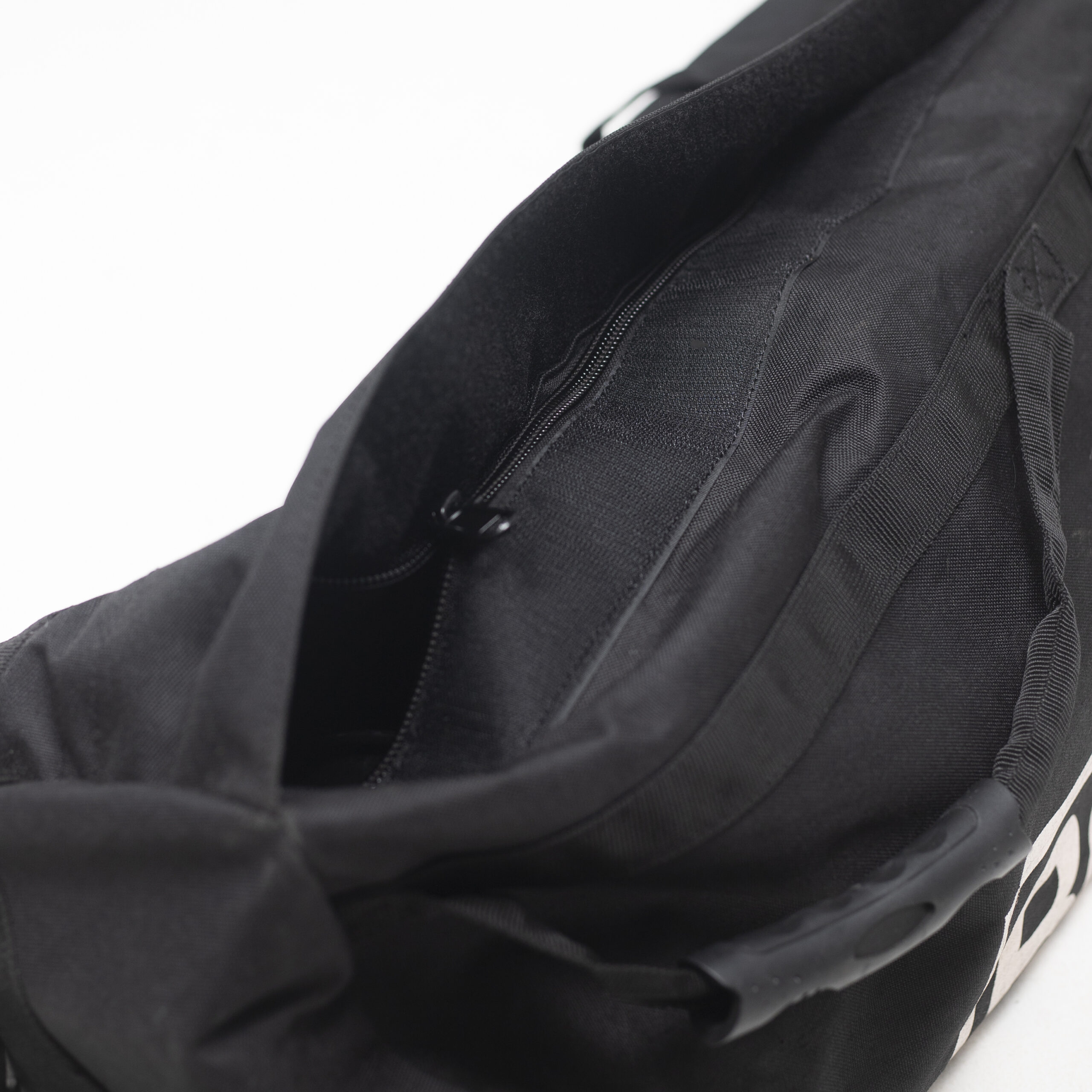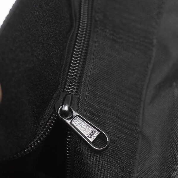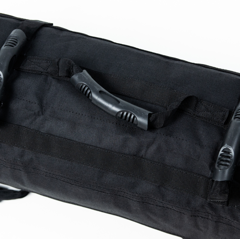 1000D Nylon, Velcro and soft rubber handles.