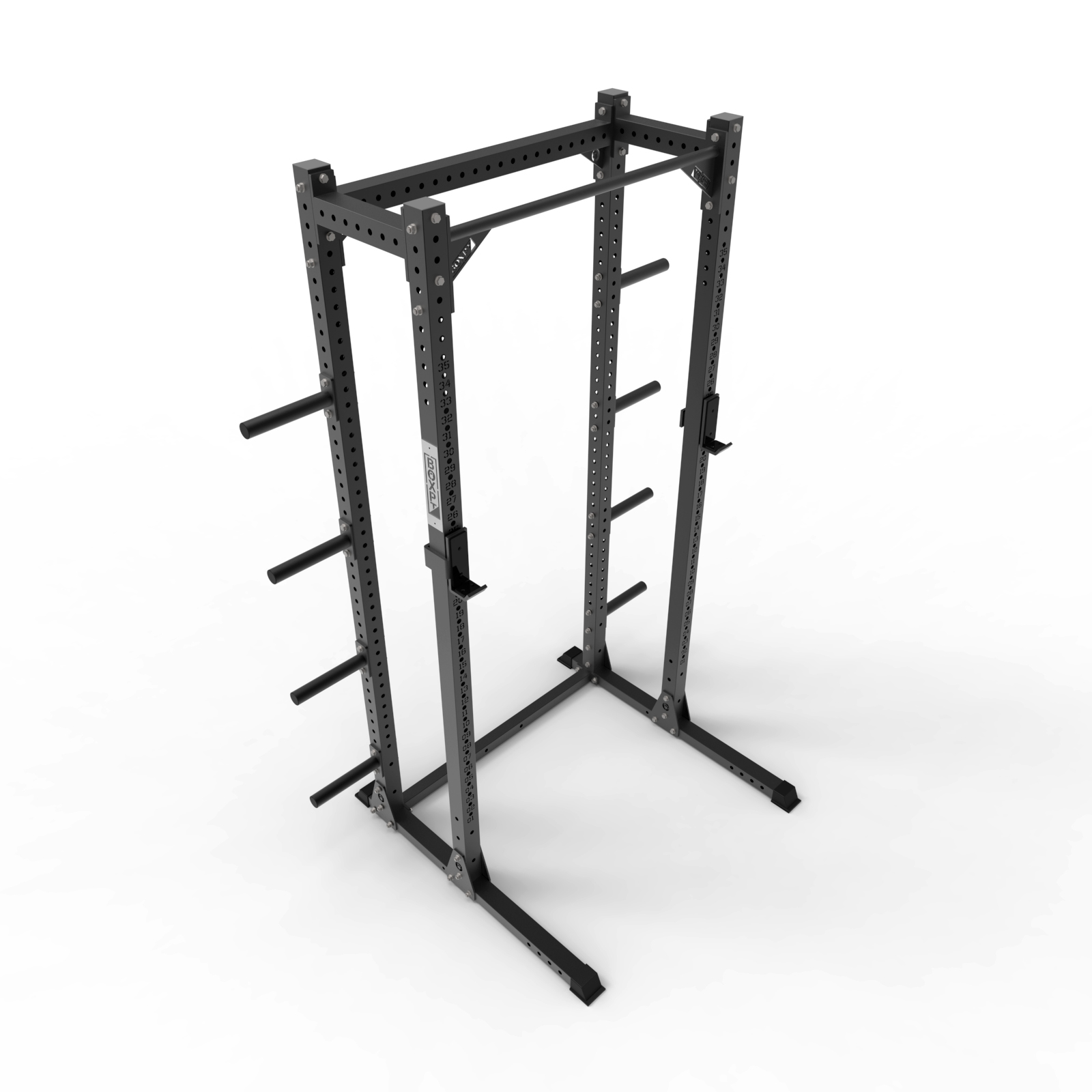 Half Rack Pro: The Half Rack Pro stands out for its innovative modular storage for discs, keeping your training space organized and efficient and also offering a safe and stable platform for a wide variety of exercises.