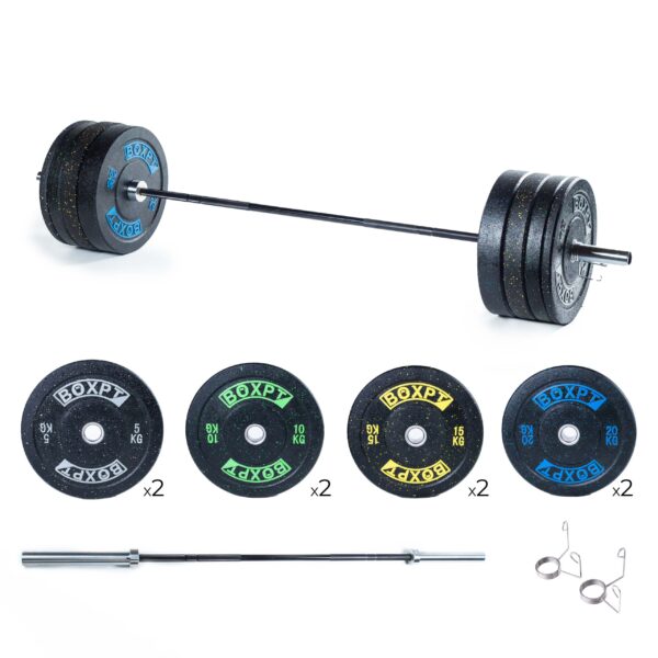 The Hi-temp Bumper Pack consists of a barbell and a variety of bumpers. It allows you to perform exercises for various muscle groups and provides gradual weight progression, making it useful for both beginners and advanced athletes.