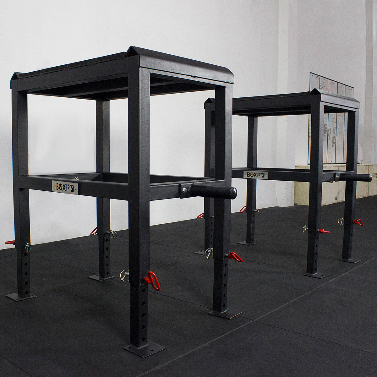 Made from steel and weighing 240kg, it is fully adjustable (from 86cm to 112cm). The advantage over the Wooden Jerk Block is that you can see the movement from any angle. It also has 4 pins that allow you to keep more load close at hand.